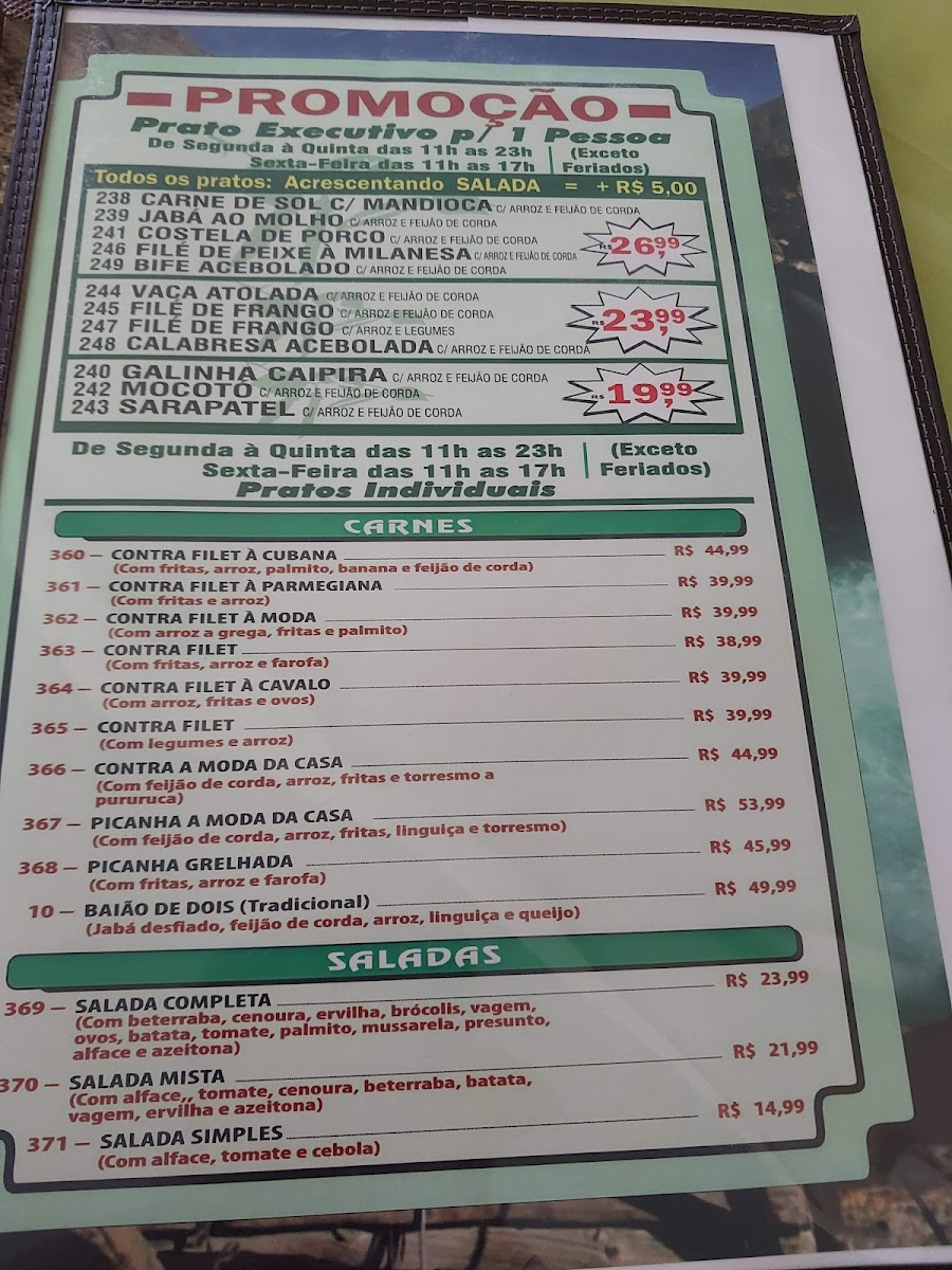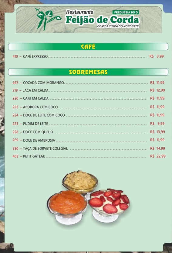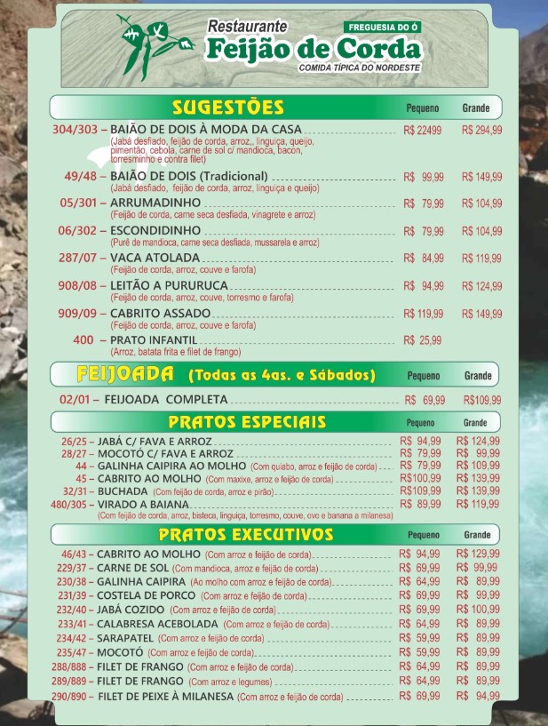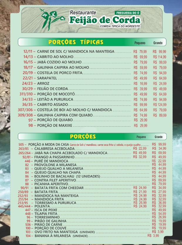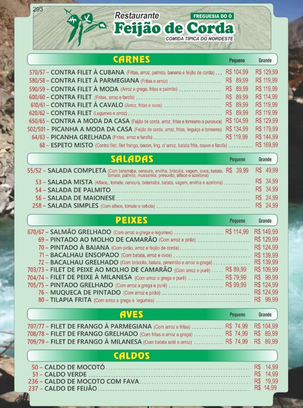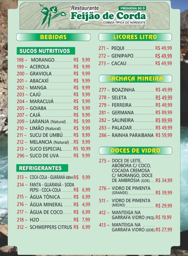 The menu is a delightful journey through traditional recipes, featuring iconic staples such as feijão de corda (string beans) served with succulent meats and savory spices. Each dish tells a story, bringing warmth and authenticity to your dining experience.